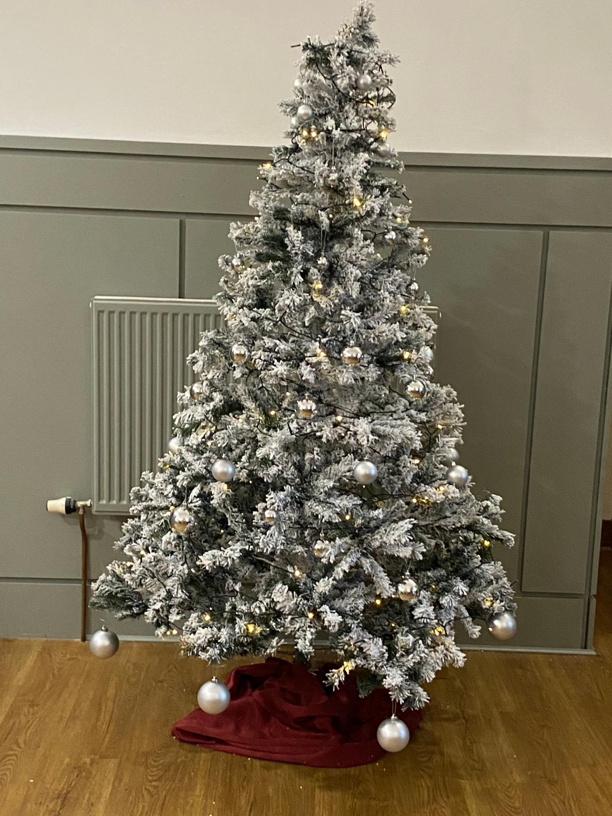 Take a candy cane and label, from box in entrance hall, which will have details of child that you will buy for: age